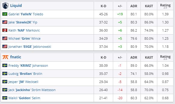 Team Liquid обыграла коллектив Fnatic в рамках первого тура группы “D” ESL Pro League Season 13 со счетом 2:0. Команда заняла первое место в группе, обойдя Virtus.pro, которая ранее обыграла Endpoint со счетом 2:0.