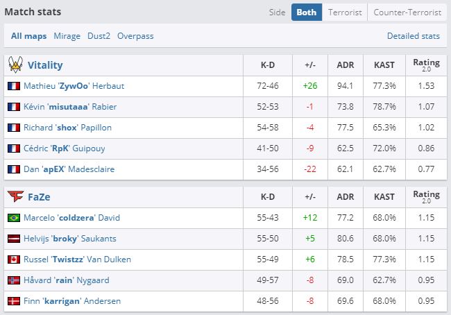Vitality в матче первого тура группы “B” ESL Pro League Season 13 переиграла FaZe Clan со счетом 2:1. Следующий соперник французской команды — G2. FaZe далее ждет встреча с mousesports.