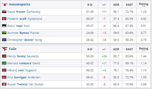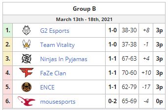 Mousesports в матче против FaZe Clan групповой стадии ESL Pro League S13 проиграла со счетом 0:2. “Мыши” расположились на последней шестой строчке в общем зачете группы “B” с результатом 0-2 по играм. Ранее коллектив уступил ENCE.