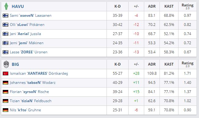В рамках третьего раунда нижней сетки Funspark ULTI 2020 команда HAVU, ранее обыгравшая Virtus.pro и Dignitas, проиграла BIG со счетом 0:2. Коллектив выбыл с соревнования и заработал $15,000 за 4 место.