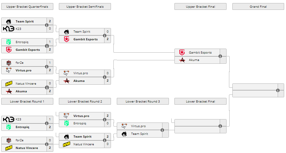 Gambit Esports против Akuma, начало в 20:00, посмотреть трансляцию можно тут.