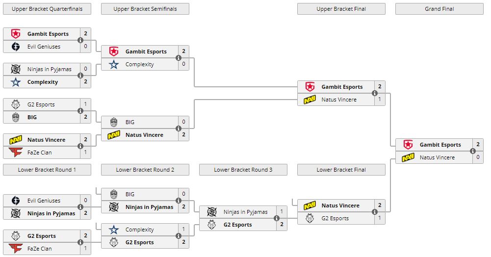 Gambit в гранд-финале BLAST Premier: Spring Finals 2021 оказалась сильнее NaVi и выиграла турнир. Счет — 2:0. Победа принесла чемпионам $225 000 и слот в BLAST Premier: World Final 2021. “Рожденные побеждать” заработали $85 000.