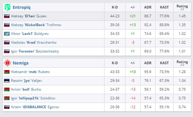За квоту боролись Nemiga и Entropiq. Белорусская команда уступила со счетом 1:2. Коллективы играли на картах: Mirage (16:4), Overpass (13:16) и Nuke (16:13).