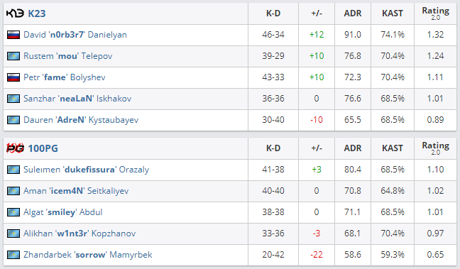 100PG покинула турнир, взяв последнее месте в группе с результатом 1-3, а K23 поднялась на второе место со счетом 2-2, забрав место в плей-офф.