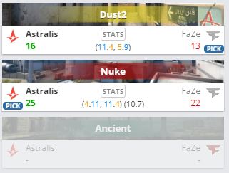 В матче группы “B” Intel Extreme Masters Season XVI – Cologne. Astralis обыграла FaZe Clan со счетом 2:0. Победителей ждет встреча с сильнейшим в паре Heroic –Team Spirit. “Клан” же опустился в нижнюю сетку.
