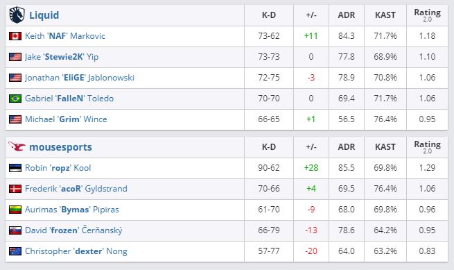 Team Liquid прошла во второй раунд нижней сетки. Mousesports покинула турнир. Она заняла 13-16 место и заработала $10,000 и 125 pts Pro Tour.