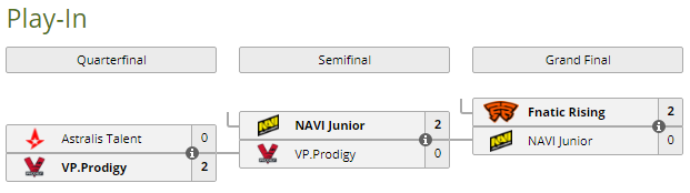 NaVi Junior уступили Fnatic Rising в финальном матче стадии Play-In на WePlay Academy League со счетом 0:2. NAVI Junior покинули турнир, заняв итоговое пятое место, а шведский клуб прошел в плей-офф чемпионата.