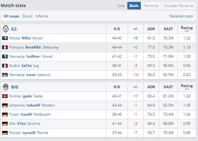 BIG обыграла в матче группы “B” BLAST Premier: Fall Groups 2021 коллектива G2 и вышла в гранд-финал квартета. Счет — 2:0 (Dust2 — 16:12, Inferno — 19:17). Соперником немцев в решающем матче станут NiP. За ходом игры можно проследить здесь. Начало — в 21.30. Отметим, что при этом оба коллектива-финалиста гарантировали себе участие в следующей стадии турнира — Fall Finals.