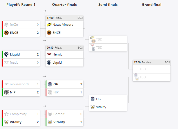 Vitality и OG стали первой полуфинальной парой турнира. 10 сентября определятся еще два участника 1/2 финала.