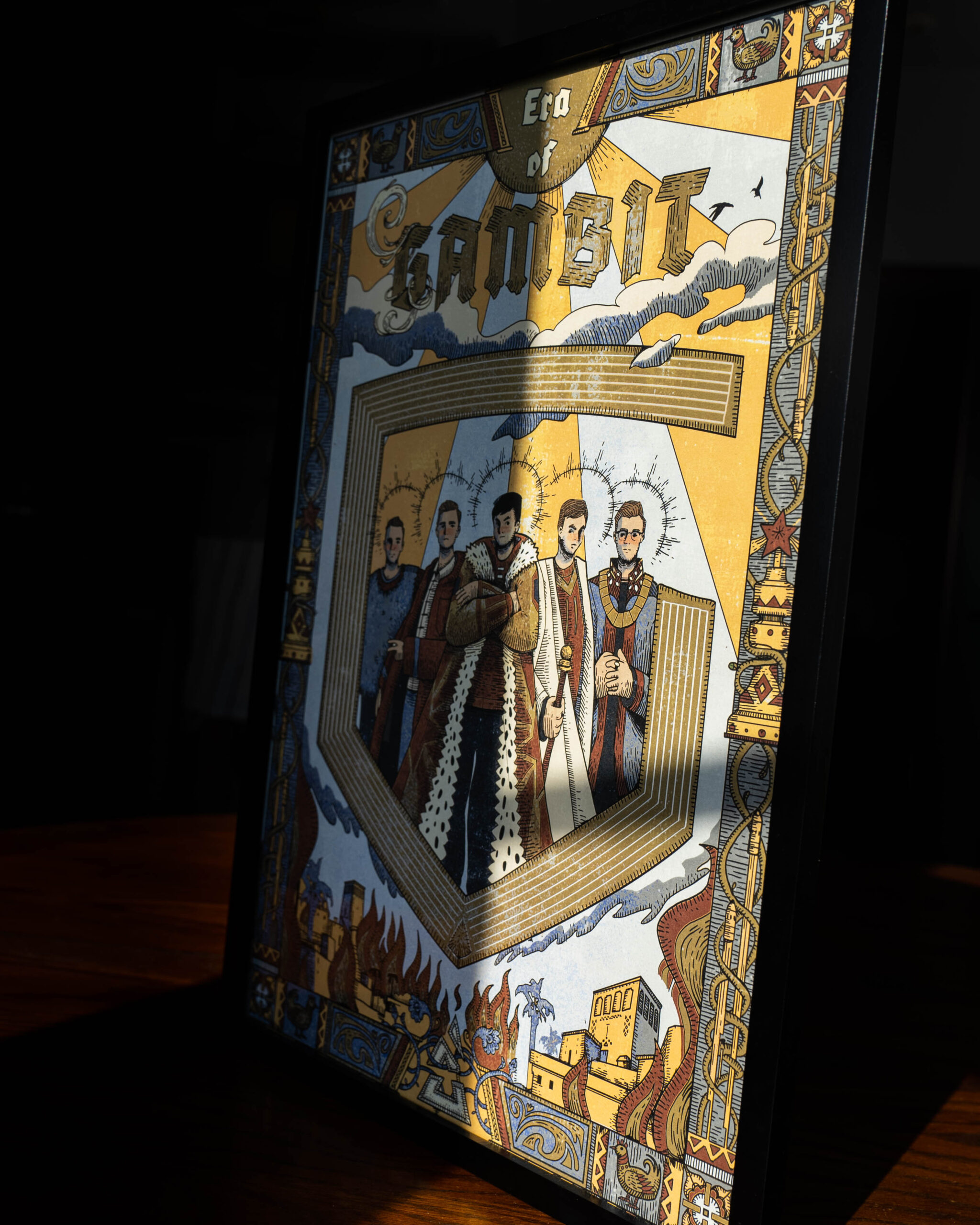 Турнирный оператор BLAST прислал в подарок российской киберспортивной организации Gambit картину. Полотно, на котором игроки состава клуба по CS:GO изображены в стиле средних веков, названо “Эра Gambit”. Картину организация получила за успехи на турнирах весной 2021 года.