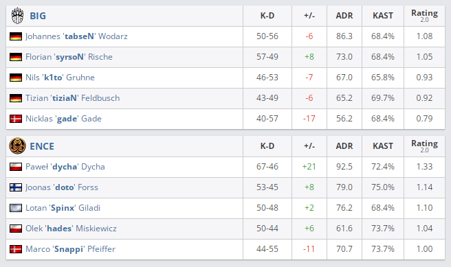 BIG — ENCE — Dust2 (6:9; 10:1), Mirage (5:10; 3:6), Nuke (6:9; 4:7)
