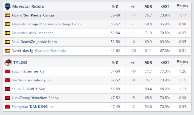 Movistar Riders — TYLOO — Inferno (8:7; 8:7), Mirage (5:10; 2:6), Vertigo (10:5; 5:10; 4:1)
