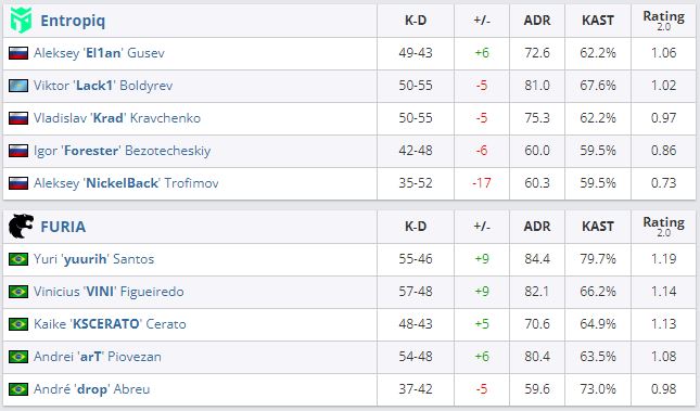 Организация FURIA вышла в плей-офф PGL Major Stockholm 2021. Бразильцы оказались сильнее СНГ-коллектива Entropiq — 2:1. Таким образом, FURIA обеспечила себе слот в плей-офф мейджора, проиграв лишь самый первый матч на турнире Astralis — 10:16. Entropiq 2 ноября сразится за последний шанс войти в топ-8 ивента.