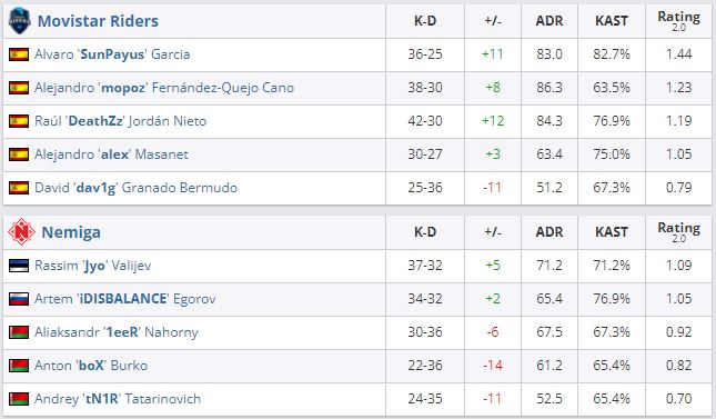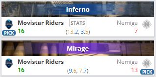 Белорусская организация Nemiga Gaming уступила Movistar Riders в рамках группы “B” на ESEA Season 39: Premier Division. Встреча завершилась “сухой” победой испанцев — 2:0 (Inferno — 16:7, Mirage — 16:13).