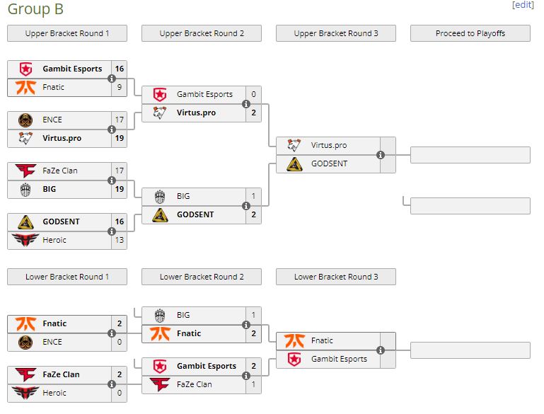 Gambit в матче нижней сетки группы “B” IEM Winter 2021 справилась с FaZe Clan. Счет — 2:1 (Inferno — 13:16, Overpass — 25:22, Ancient — 16:10). Следующий поединок парни из российской организации проведут с Fnatic 4 декабря примерно в 22.00. На кону путевка в плей-офф.