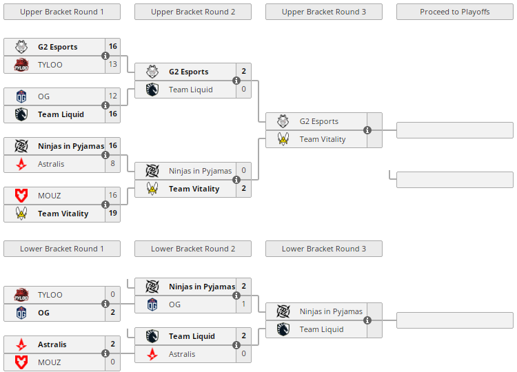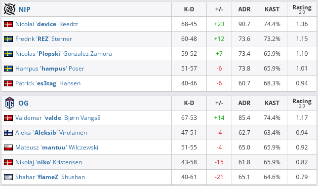 NiP выбила с IEM Winter 2021 коллектив OG. Матч второго раунда нижней сетки между этими командами завершился со счетом 2:1 (Inferno — 16:13, Ancient — 13:16, Nuke — 16:8). Следующий матч “ниндзя в пижамах” сыграют против Liquid 4 декабря в 18.45.