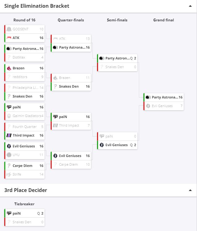 Evil Geniuses, paiN и Party Astronauts стали последними участниками американского RMR по CS:GO. Бразильский коллектив GODSENT проиграл в 1/8 финала ATK и не смог пройти через сито отборочного этапа. Отметим, это была последняя квалификация для американского региона.