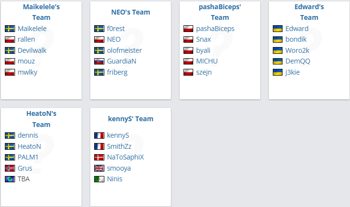 Самых легендарных игроков взял себе NEO. В его команде двое из золотого состава NiP (friberg и f0rest) и двое из серебряного состава Faze Clan (olofmeister и GuardiaN).