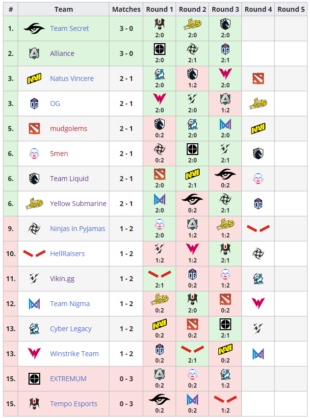 Согласно регламенту ESL One Germany 2020 команды, победившие в трех матчах проходят в стадию плей-офф, а в случае поражения в трех матчах команда выбывает из турнира.