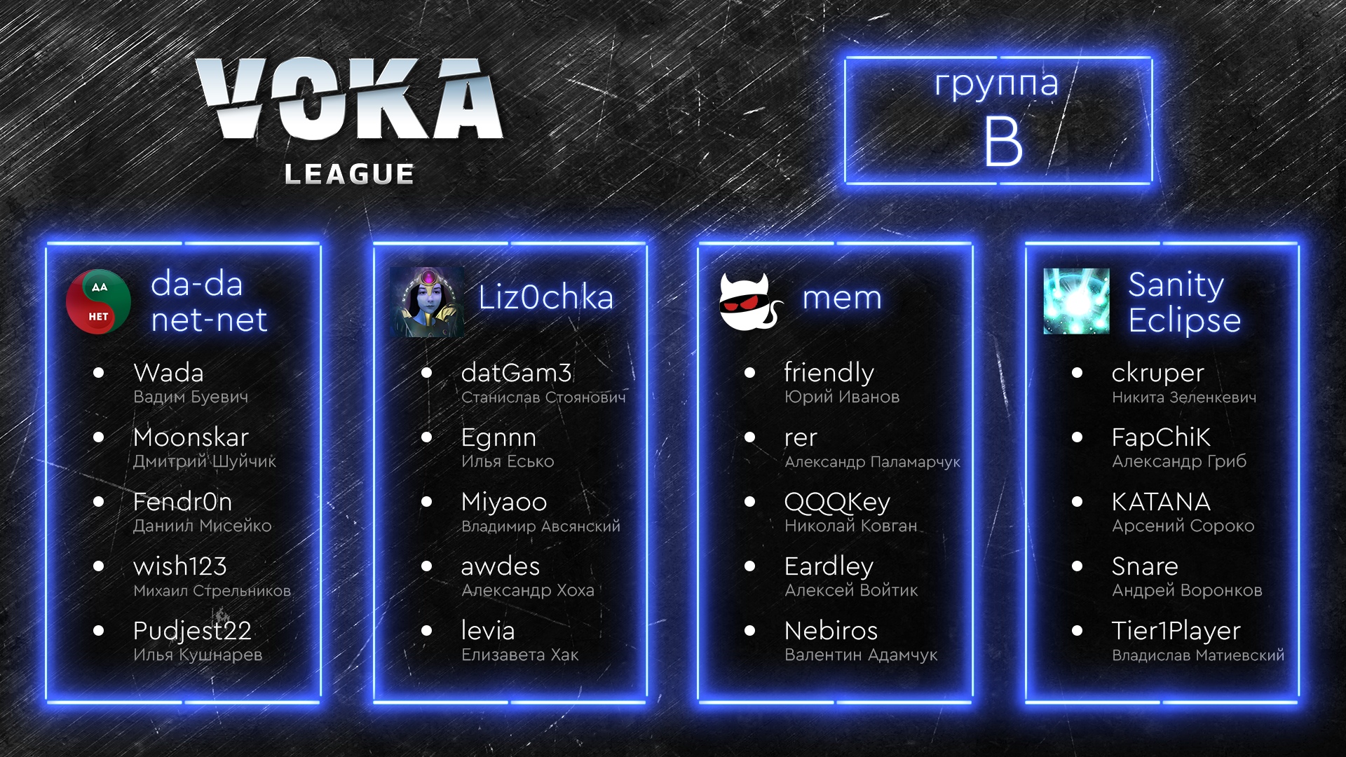 Стартуют матчи группового этапа уже сегодня. В 19:00 в рамках квартета “B” da-da net-net сыграют против mem.