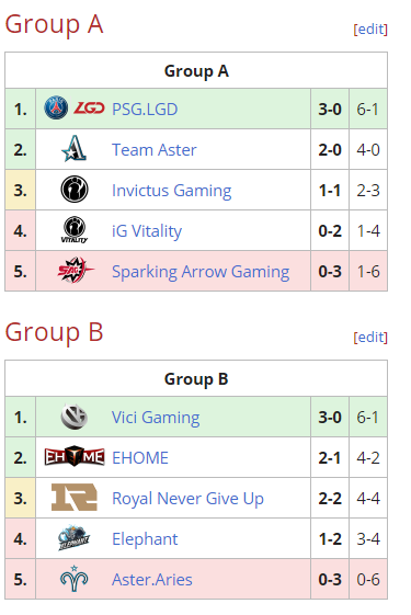 Положение команд в группах:
