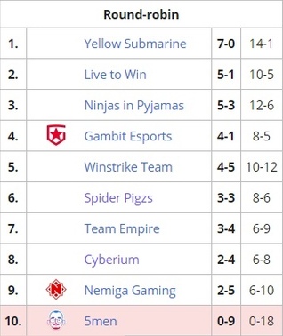 После пяти матчей Gambit на четвертом месте, а “поросята”, сыграв на один поединок больше, – на шестом месте. Завтра пройдет единственная встреча в рамках EPIC League между Nemiga и Gambit.