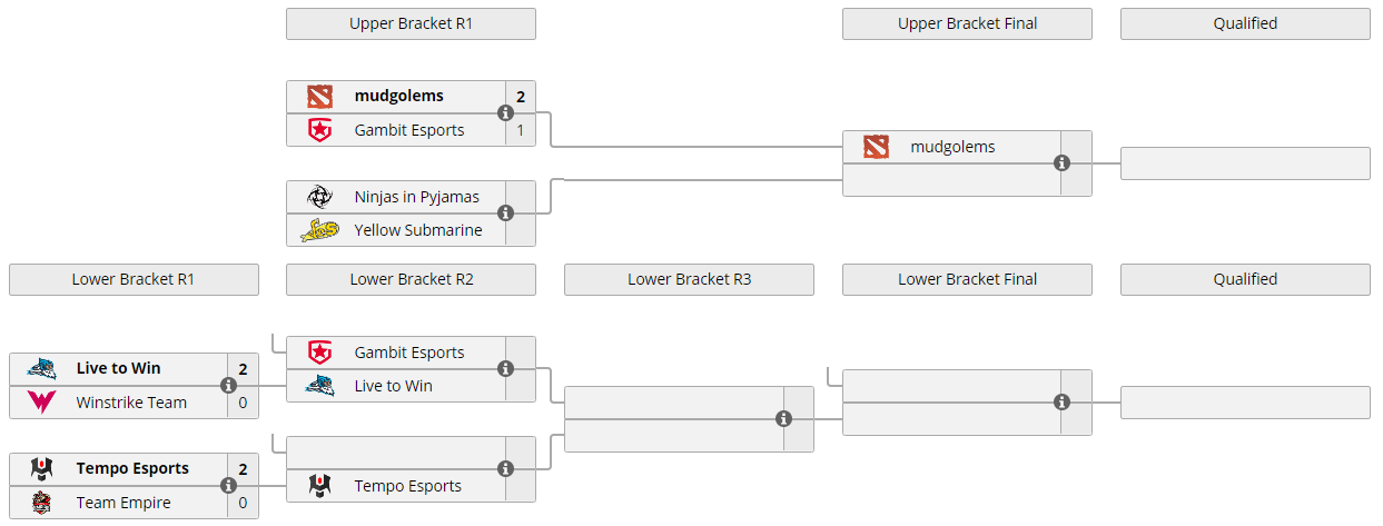 В первом раунде верхней сетки плеф-офф закрытых квалификаций на EPIC League команда mudgolems со счетом 2:1 переиграла коллектив Gambit Esports.