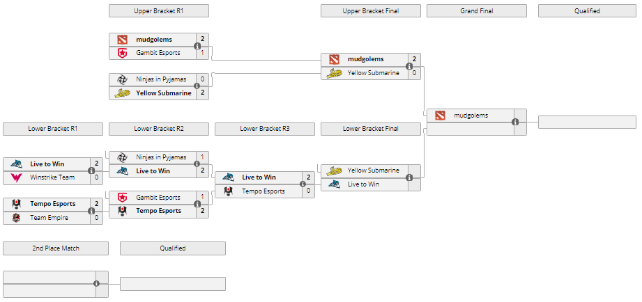 Mudgolems обыграла Yellow Submarine в финале верхней сетки закрытых отборов Epic League со счетом 2:0. По итогу матча Mudgolems прошла в гранд-финал квалификаций, а Yes придется сыграть с Live to Win за выживание в турнирной сетке 10 ноября в 16:00.