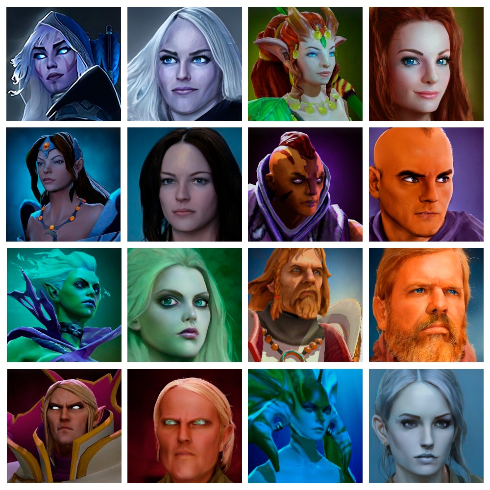 В группе “Студия Аналитики” во ВКонтакте опубликована картинка героев из Dota 2, которых нейросеть изобразила как реальных людей. Специальная программа трансформировала внешность персонажей из игры, убрав шрамы и элементы брони, а также изменив цвет кожи и прическу.