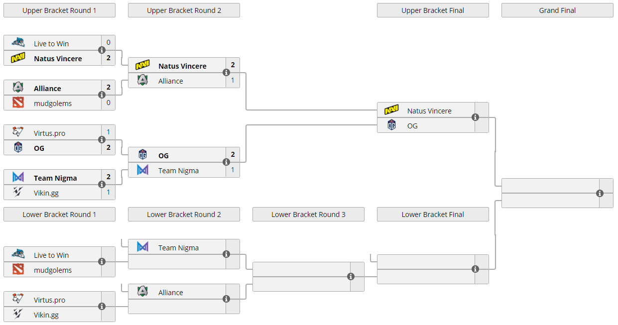 Во втором раунде верхней сетки плей-офф OGA Dota PIT Season 4: Europe/CIS OG оказалась сильнее Team Nigma и закончила встречу со счетом 2:1 в свою пользу. Проигравшая команда опустилась в нижнюю сетку.