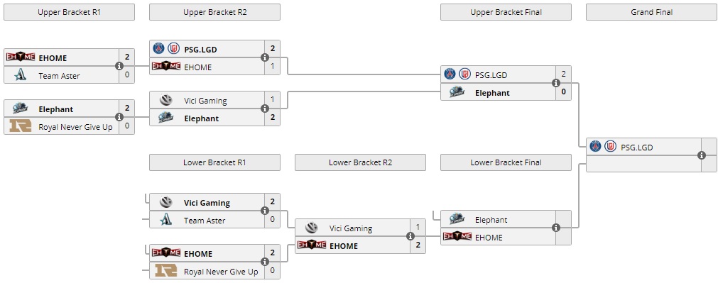 PSG LGD обыграла Elephant в матче финала верхней сетки плей-офф OGA Dota PIT Season 4: China со счетом 2:0. Китайские парижане стали первым участником гранд-финала. А в последнем матче нижней сетки “слоны” сыграют с коллективом EHOME.