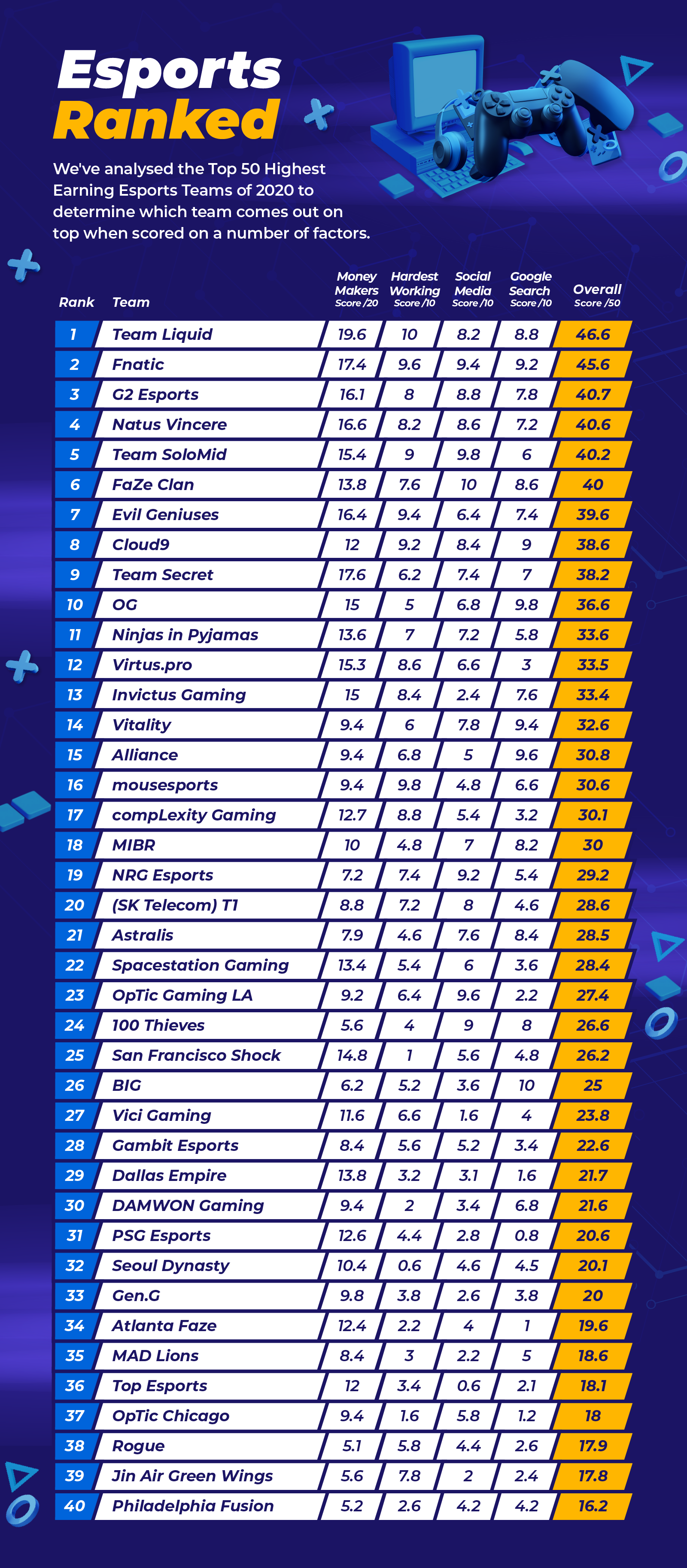 Площадка для онлайн-гемблинга SlotsUp провела масштабное киберспортивное исследование, в котором анализировались достижения 50 команд.