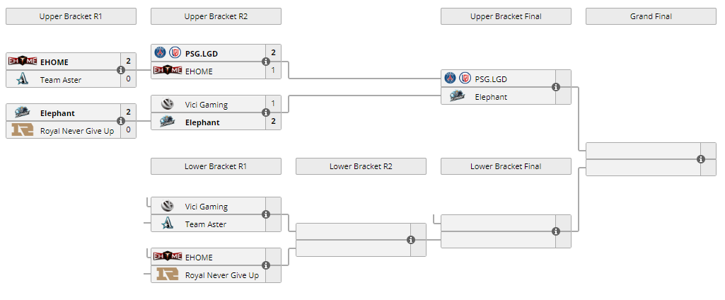 Elephant обыграла Vici Gaming в матче полуфинала верхней сетки плей-офф OGA Dota PIT Season 4: China со счетом 2:1. VG отправилась в нижнюю сетку, где встретится с Aster, а Elephant прошла в финал плей-офф, где столкнется с PSG.LGD. Первая путевка в гранд-финал разыграется 10 декабря в 12:00.