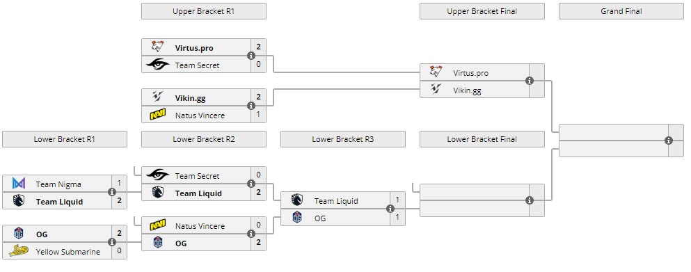 Virtus.pro столкнется с Vikin.gg в финале верхней сетки плей-офф Epic League Division 1 сразу после игры OG vs Liquid. Поболеть за российский коллектив можно на нашем сайте.
