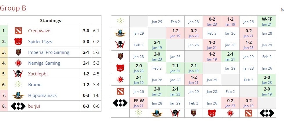 Текущее положение команд в группе “В”