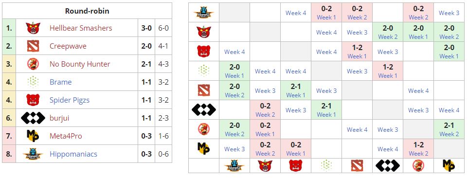 Hellbear Smashers выиграли Meta4Pro в матче группового этапа низшего дивизиона DPC EU со счетом 2:0. Hellbear Smashers закрепили свое первое место в общем зачете, коллектив не проиграл еще ни одной встречи.
