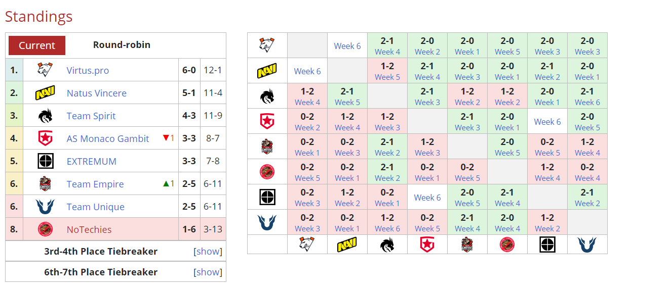 По прошествии шести туров у Monaco Gambit и EXTREMUM по три победы.