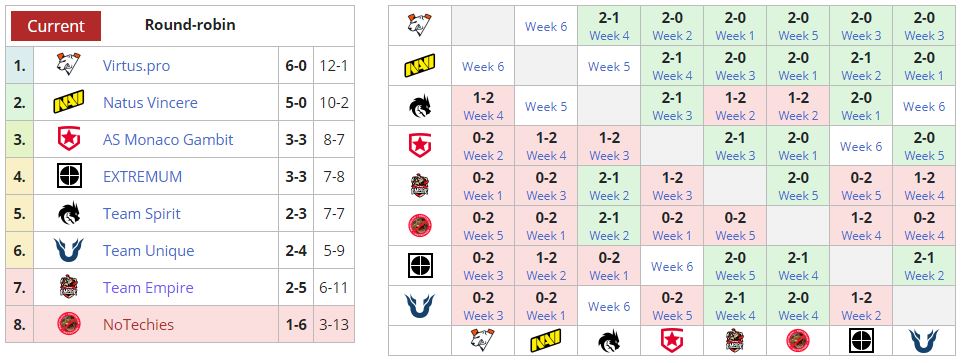 Natus Vincere сыграет с Team Spirit в рамках матча группового этапа высшего дивизиона DPC СНГ в 20:00. Украинский коллектив уже заработал себе место на мажоре, и дальнейшие матчи определят, с какой стадии команда его начнет.