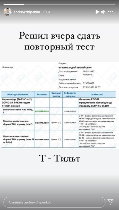 Тренер состава по Dota 2 украинской организации Natus Vincere Андрей Mag Чипенко в своем инстаграме выложил результаты повторного тестирования на коронавирус. Результат оказался отрицательным.