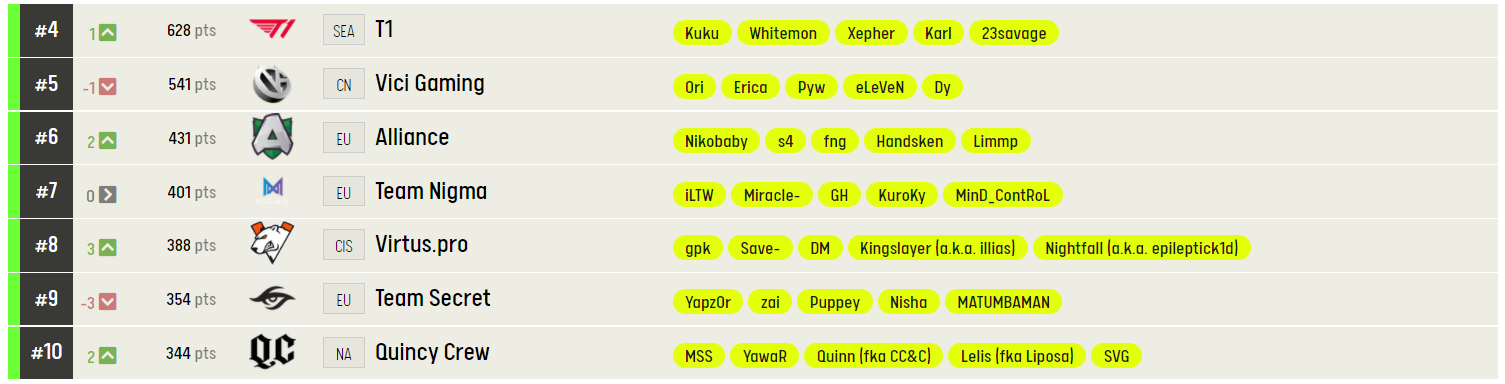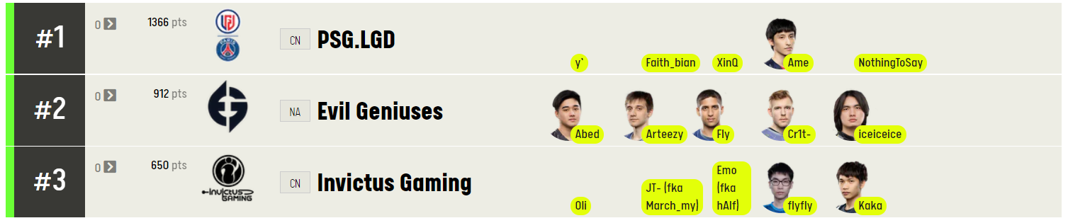 Турнирный оператор ESL обновил рейтинг лучших команд мира по Dota 2. Тройка лидеров осталась без изменений: на первом месте — PSG.LGD, на втором — Evil Geniuses, а на третьем — Invictus Gaming. Состав шведского клуба Alliance с белорусом Артемом fng Баршаком прибавил две позиции и расположился на шестой строчке.