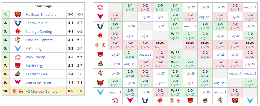 AS Monaco Gambit отказалась от участия в турнире. Команде засчитаны поражения в прошедших матчах, а также во всех матчах, которые должны были пройти в будущем по расписанию.