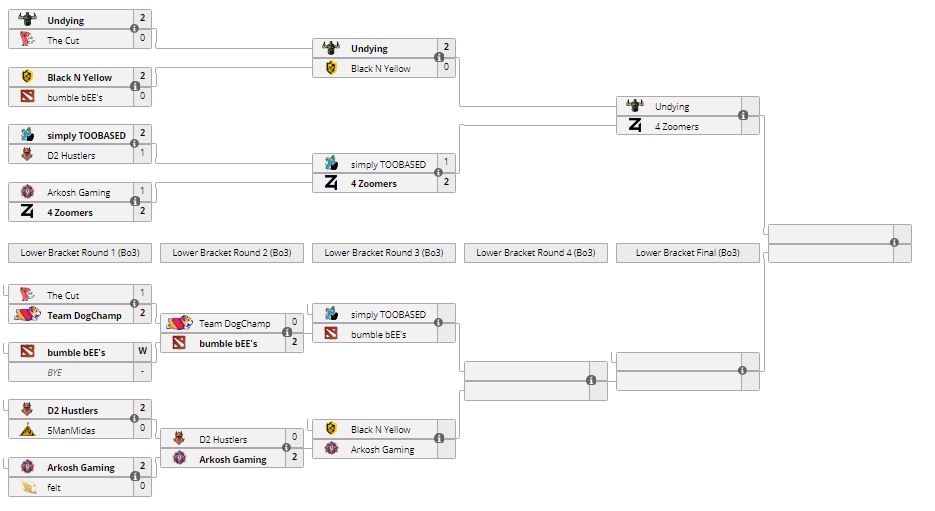 В финал верхней сетки прошли коллективы Undying и 4 Zoomers. Они поборются за выход в гранд-финал 3 июля в 1.00.