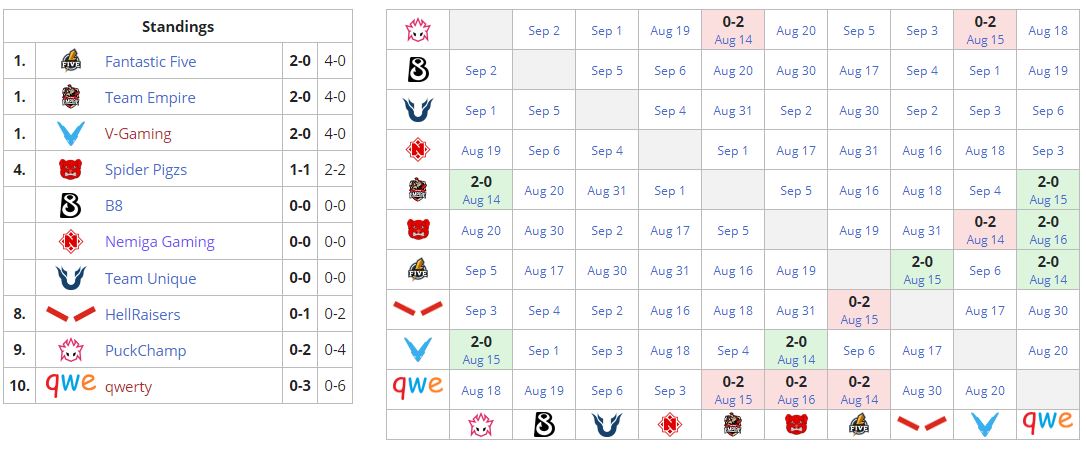 Spider Pigzs продолжат выступление на турнире 17 августа матчем с Nemiga (15.00), а qwerty 18 августа в 18.00 сразится с PuckChamp.