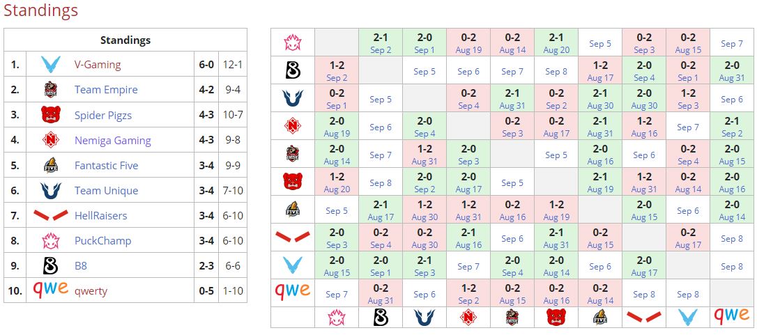 B8 в матче группового этапа Dota 2 Champions League переиграла HellRaisers со счетом 2:0. Для команды Dendi эта победа стала второй на турнире (при трех поражениях). HR же потерпели четвертое поражение (сыграно семь матчей).