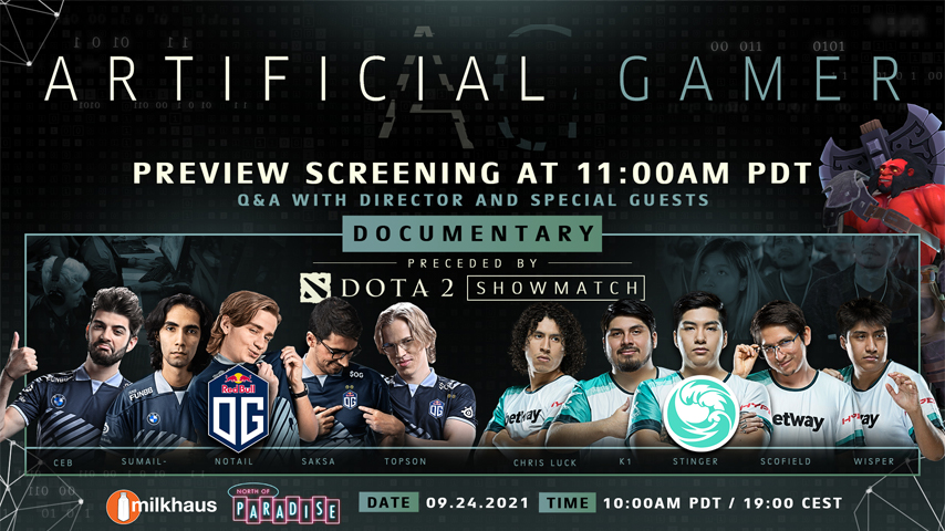 Фильм Artificial Gamer рассказывает о разработке известных ботов OpenAI для Dota 2, представленных на The International 2017 в матче 1 на 1 с Dendi. Премьера документальной ленты состоится 24 сентября после шоу-матча.