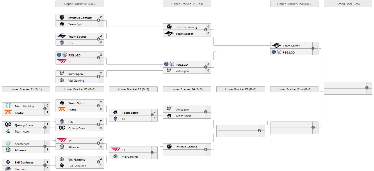 В плей-офф The International 10 Team Spirit со счетом 2:0 обыграла OG и вышла в топ-6 турнира. Следующим соперником “драконов” стала Virtus.Pro. Матч запланирован на 16:00. А европейская команда покинула турнир, заняв 7-8 место и заработав $ 1 000 500.