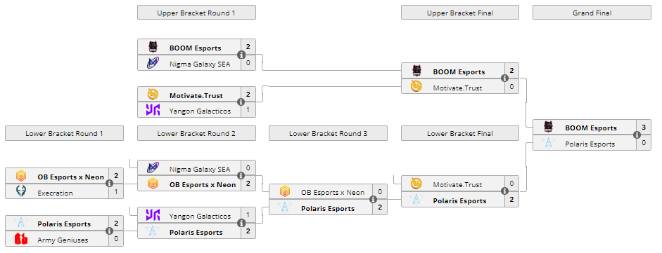 В гранд-финале BTS Pro Series Season 9 команда BOOM Esports со счетом 3:0 обыграла Polaris Esports и стала чемпионом турнира. За победу коллектив Тимоти Tims Рандрапа заработал $24 000.