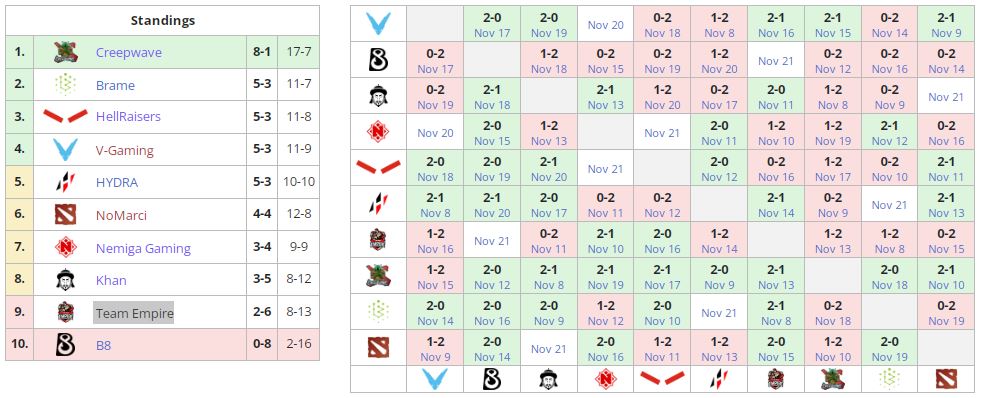 Следующий матч HYDRA проведет с Brame. B8 же встретится с Team Empire, для которой это последний шанс попасть в плей-офф. Оба поединка состоятся завтра, 21 ноября.