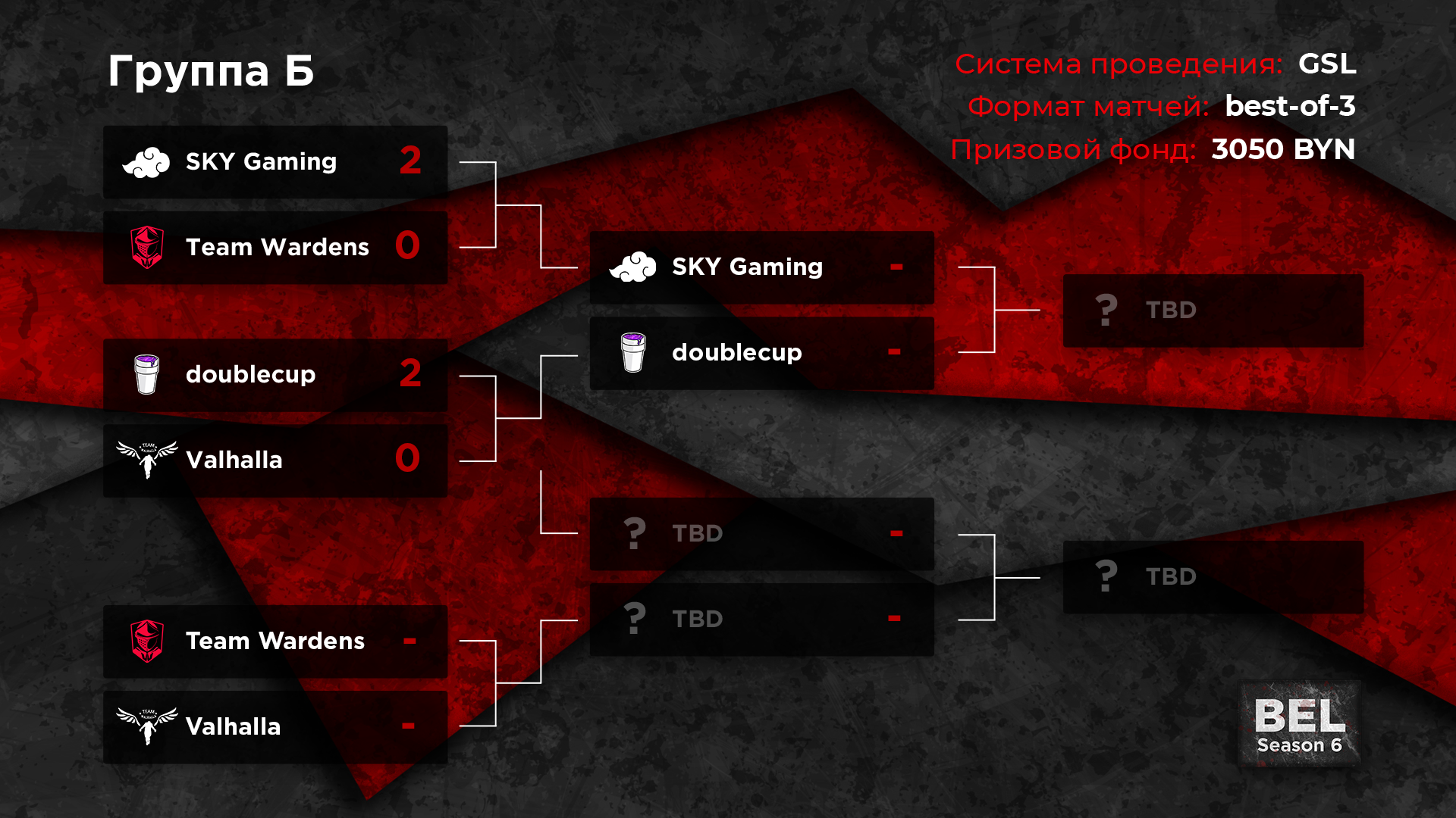 Общий призовой фонд ивента — 3050 рублей. За каждую выигранную серию на групповой стадии и плей-офф команды получают 150 рублей. Столько же заработают коллективы, занявшие первые места в своих квартетах. Чемпионам достанется еще 500 рублей. Организатор турнира — Белорусская Федерация киберспорта.