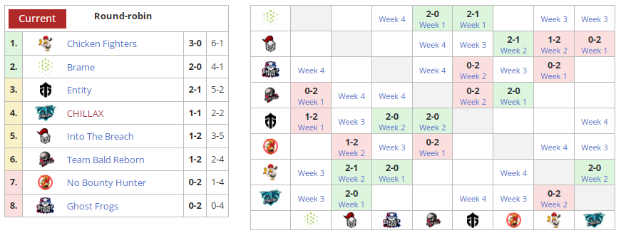 В следующем матче Into The Breach встретится с Entity Дмитрий fishman Полищука, Chicken Fighters сыграет с Brame. Оба поединка пройдут 15 декабря.